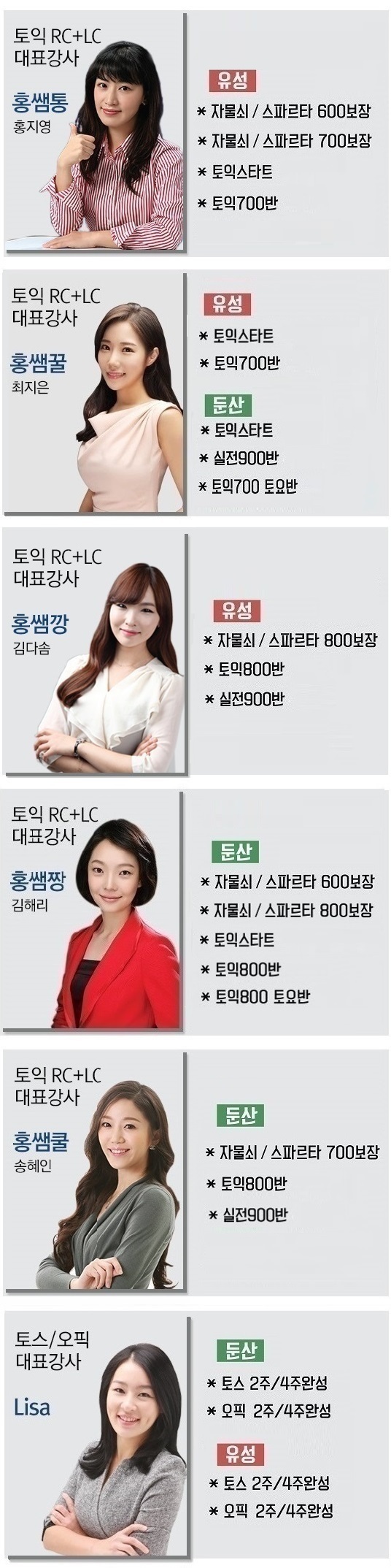 강사별 과목 안내